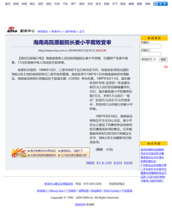 娄小平,原海南省省高院副院长、党组成员、审判委员会委员,在办理某农场土地纠纷行政复议案件中,利用职务之便为该农场谋取利益,伙同原法制局干部温某共同受贿人民币40万元。娄小平另有人民币85.3万元的财产不能说明合法来源。以受贿罪、巨额财产来源不明罪判处有期徒刑11年,剥夺政治权利2年。