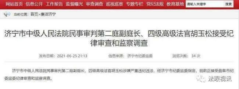 胡玉松,曾任济宁市中级人民法院民事审判第二庭副庭长、四级高级法官,因严重违纪违法被开除党籍和公职。
