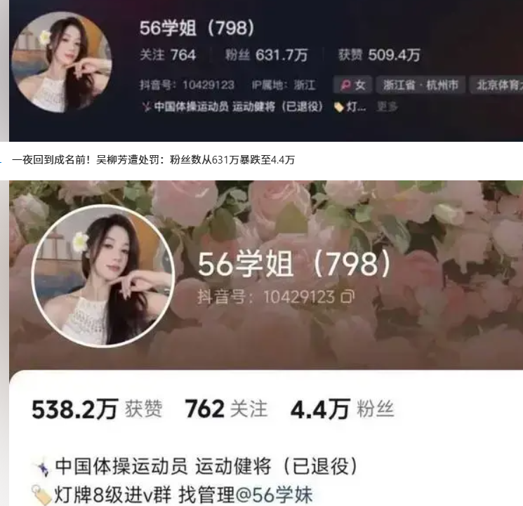 最新消息,前世界体操冠军吴柳芳再度被禁言,631万粉丝被移除,目前仅剩4.4万。